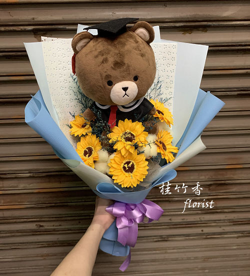 花 材: 香皂花、乾燥花、畢業熊